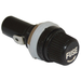 Panel mount screw apart black fuse holder with round top. Complete with washer and dress ring. Fuse not included.